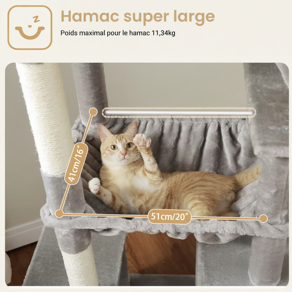 Arbre à Chat Maine Coon Design 180cm, Tour Royale XXL à 2 Niches