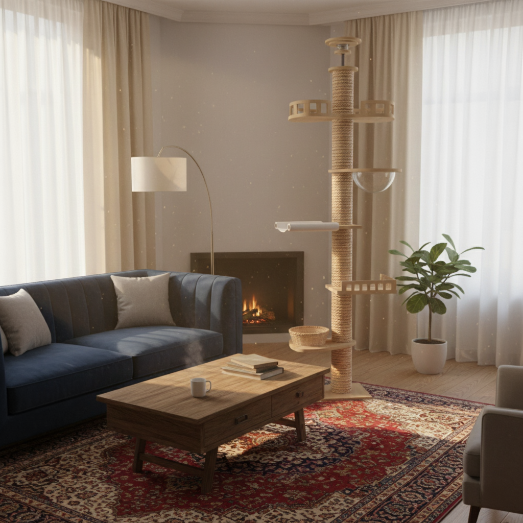 Arbre à Chat Maine Coon en Bois 270cm, Skyview Sol-Plafond avec Bulle
