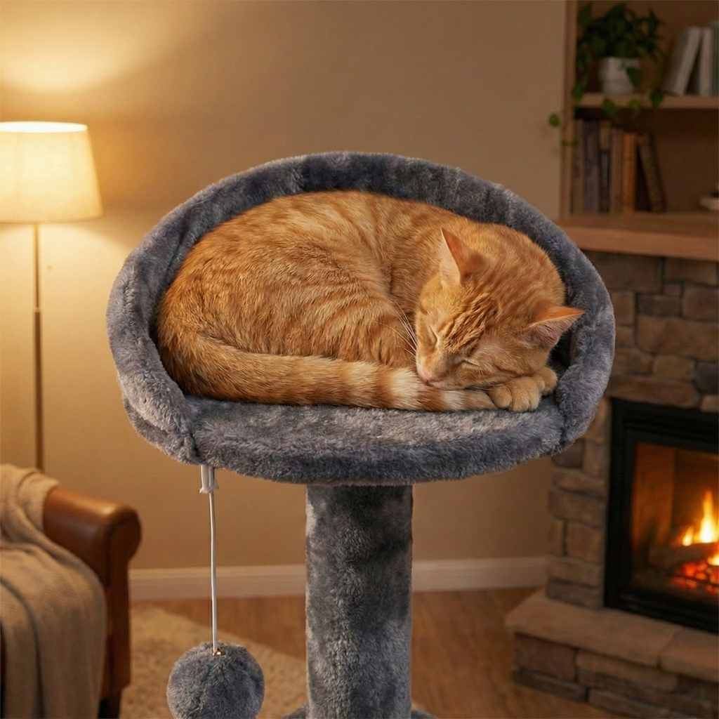 L'arbre à chat est livré démonté. L'assemblage complet doit être fait par vos soins avant toute mise en service. Une notice de montage est incluse dans l'emballage. Pour optimiser l'équilibre de la structure, il est recommandé de placer la base sur une surface plane.